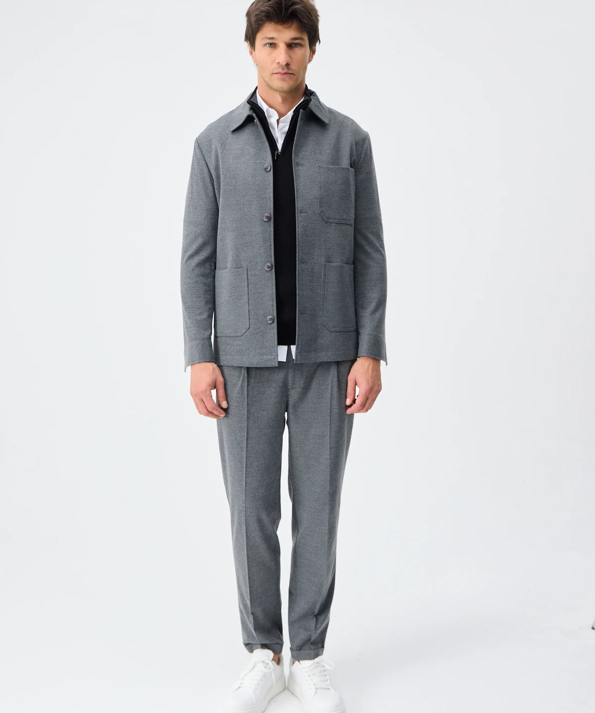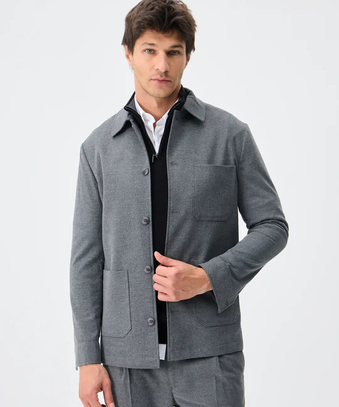 Blazer smart din amestec de lână, cu trei buzunare - gri