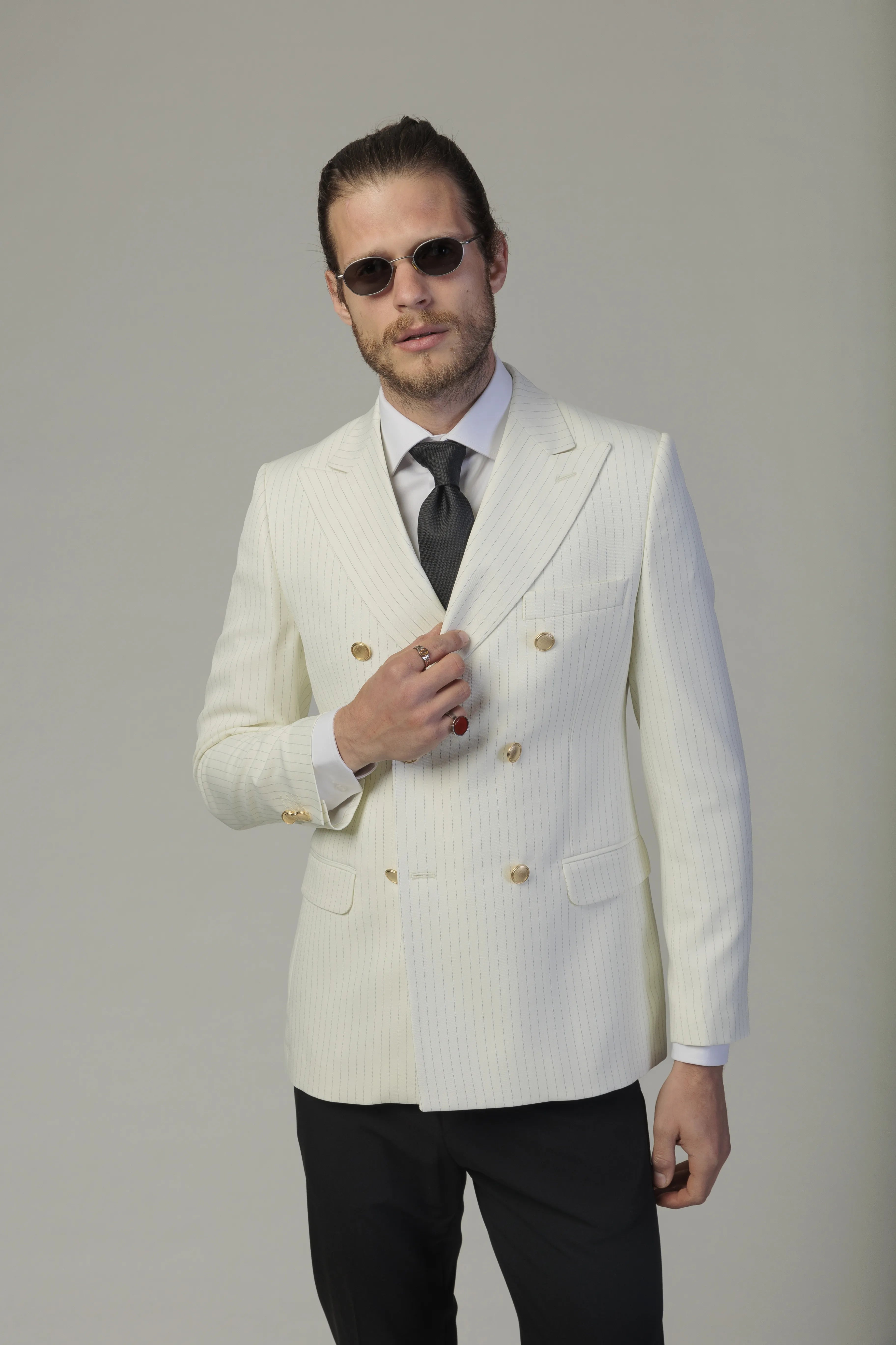 Sacou Alb cu Dungi, Double Breasted