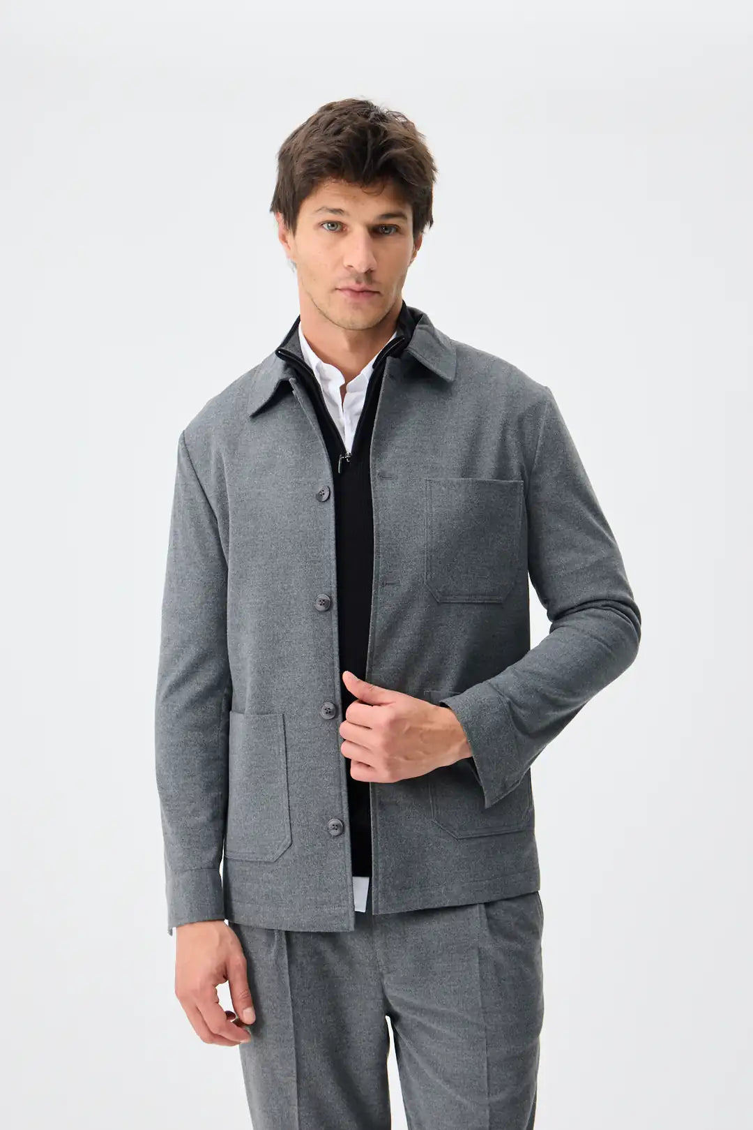 Blazer cu linii curate și croială relaxată–regular, gândit pentru versatilitate de la office la smart-casual. Țesătura din amestec de lână oferă căldură și atingere moale, iar detaliile minimale (nasturi matați, trei buzunare aplicate, rever clasic) păstrează un look modern și rafinat. Se poartă ușor peste cămăși sau tricotaje, în orice sezon.