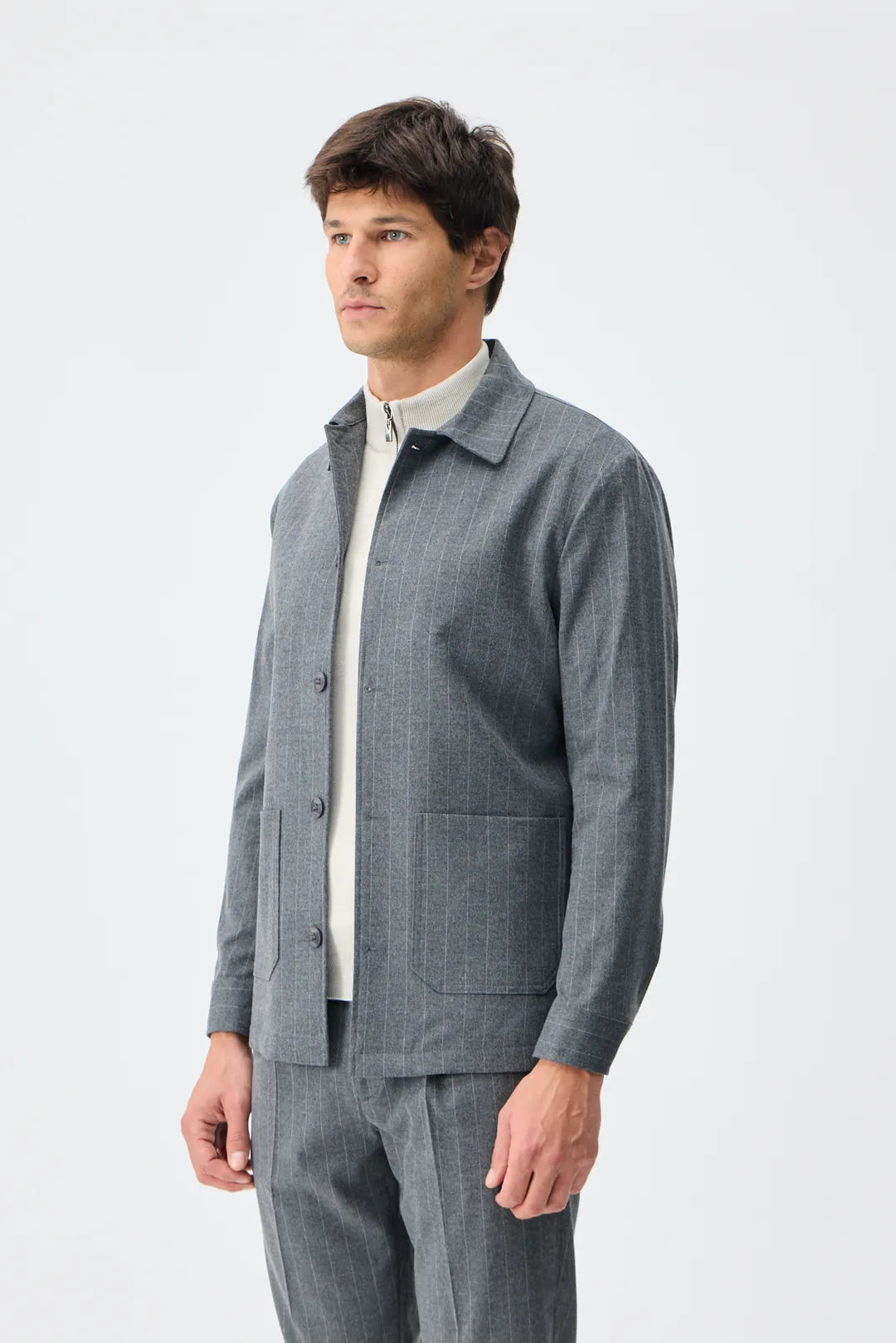 Blazer smart din amestec de lână, cu trei buzunare - gri cu dungi