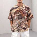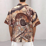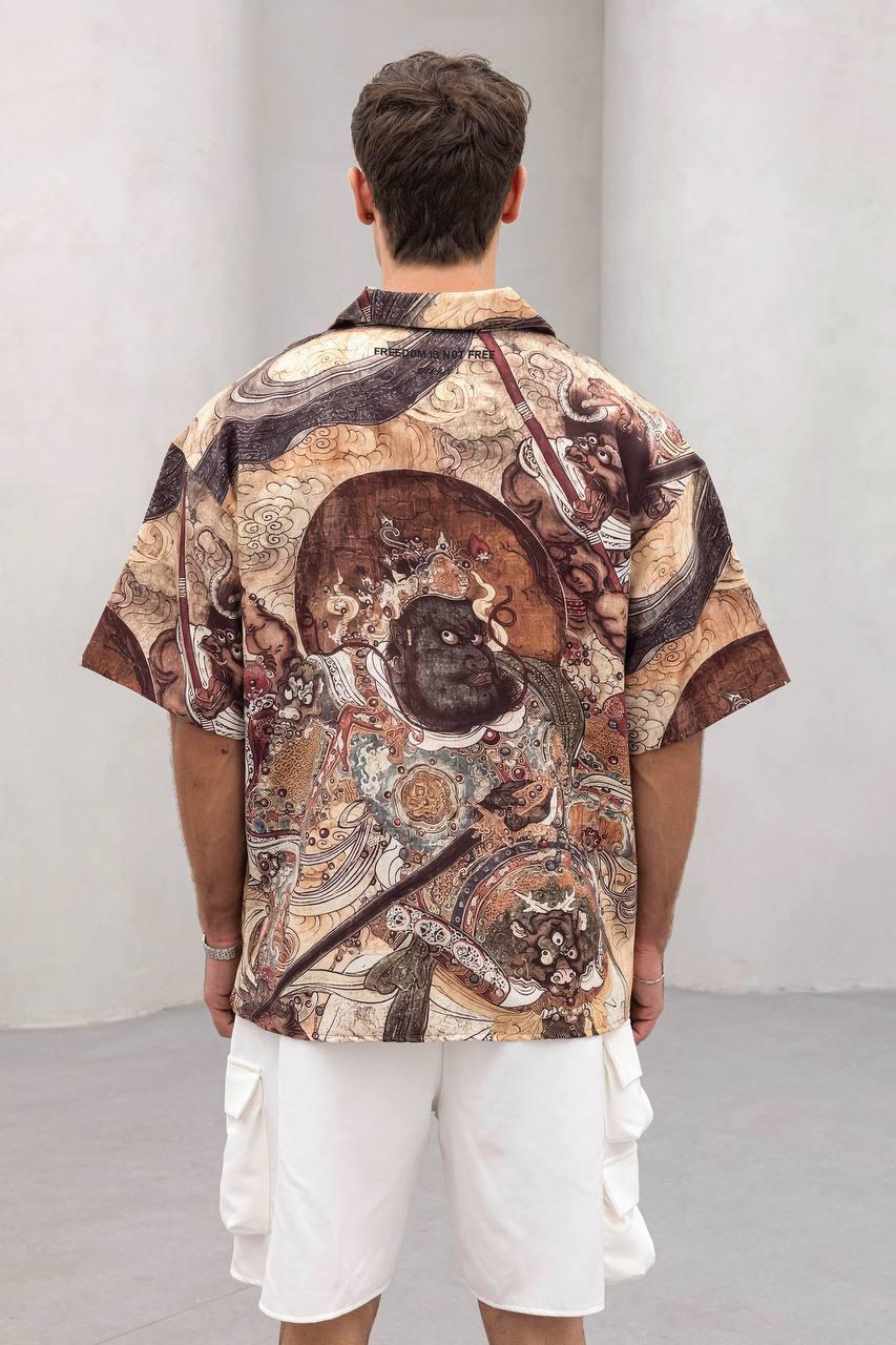 Cămașă oversize cu guler cubanez și imprimeu mural oriental