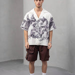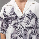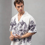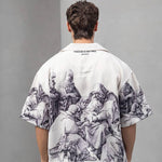 Cămașă oversize cu guler cubanez – Imprimeu „Gravură Renascentistă” (alb-negru)
