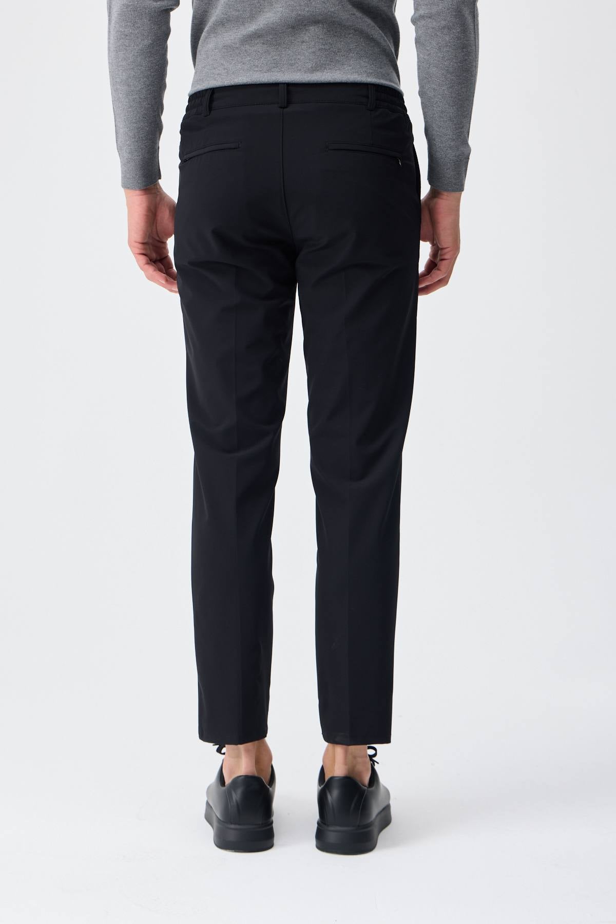 Lejeri și moderni, acești pantaloni din material tehnic cu stretch oferă libertate de mișcare și un look îngrijit toată ziua. Talie hibridă cu șnur și elastic lateral – confort de jogger, aspect de chino.