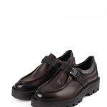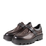 Pantofi Over Size Dark Brown cu cusatură decorativă și cataramă