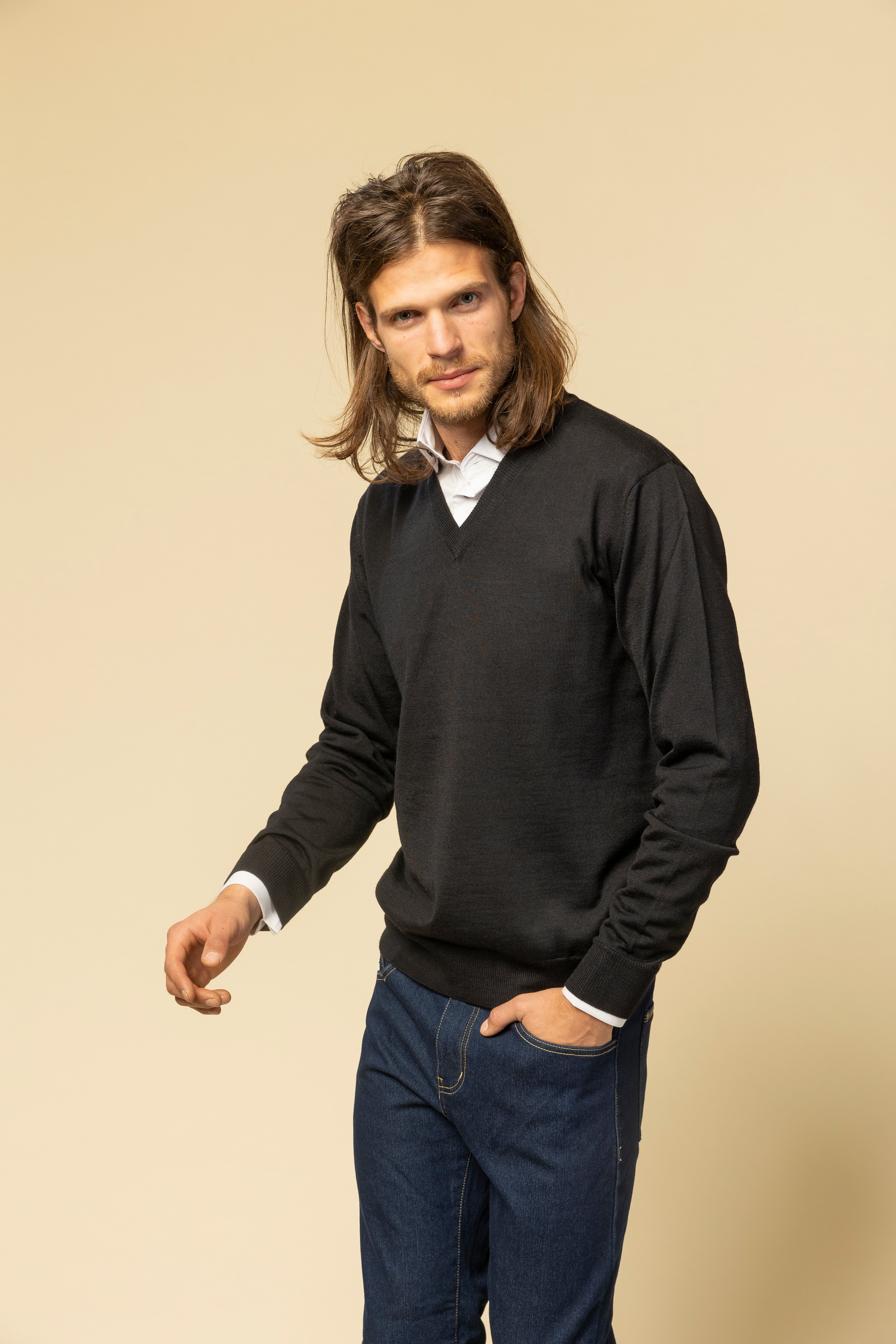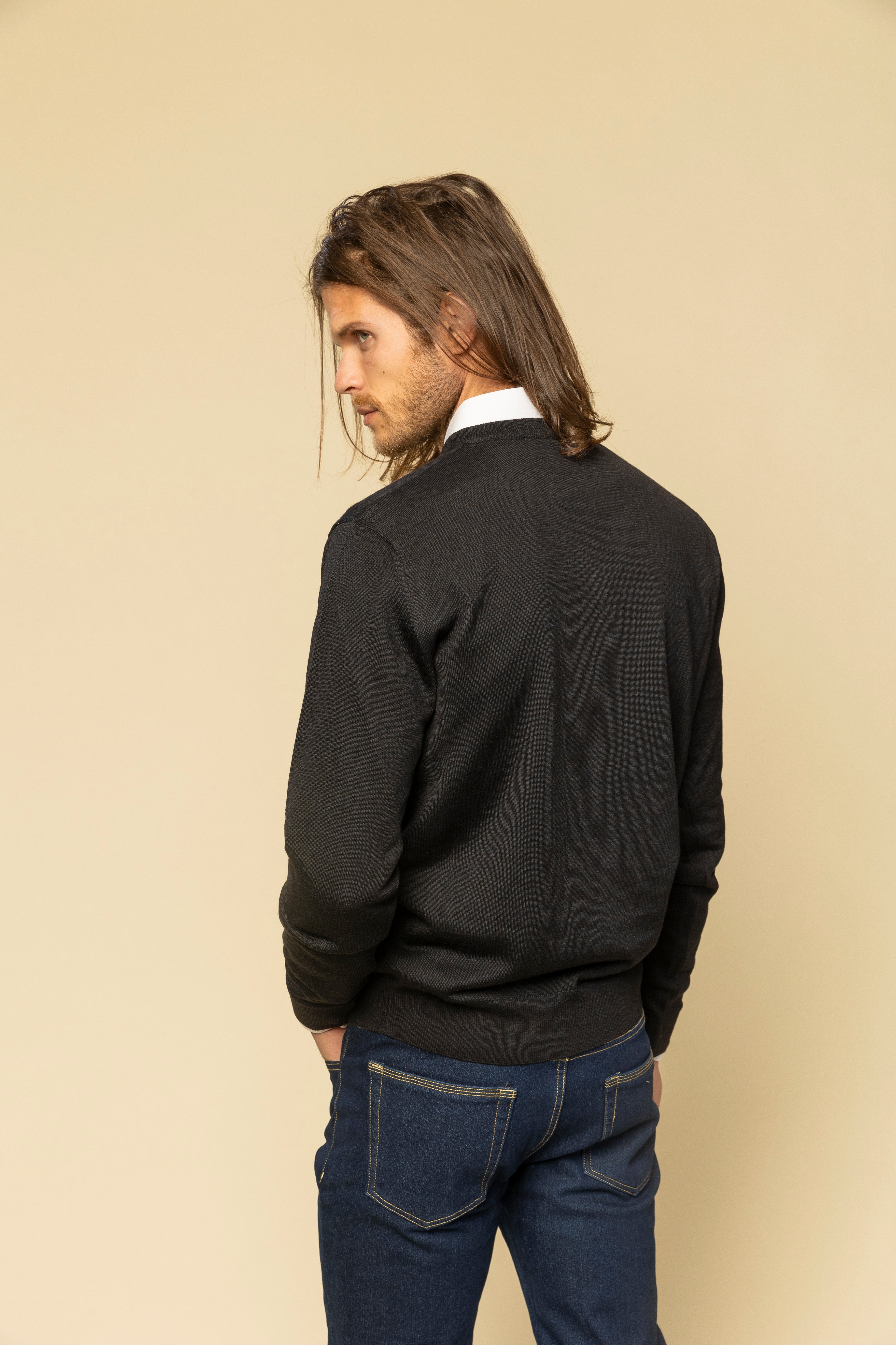 Pulover în V negru