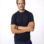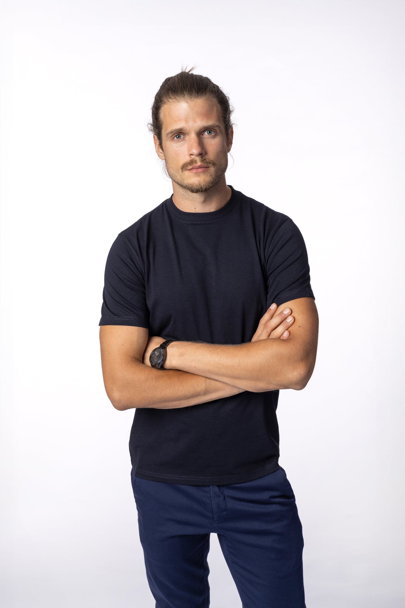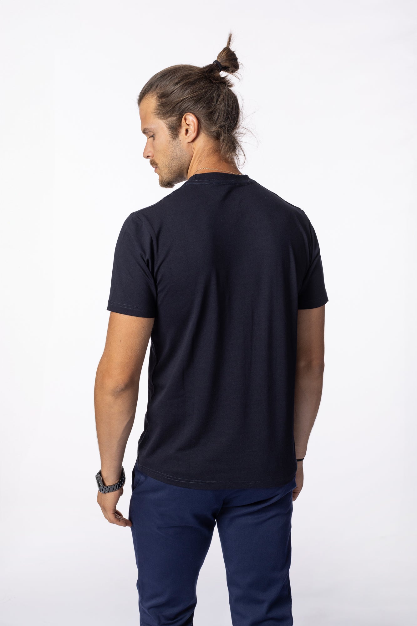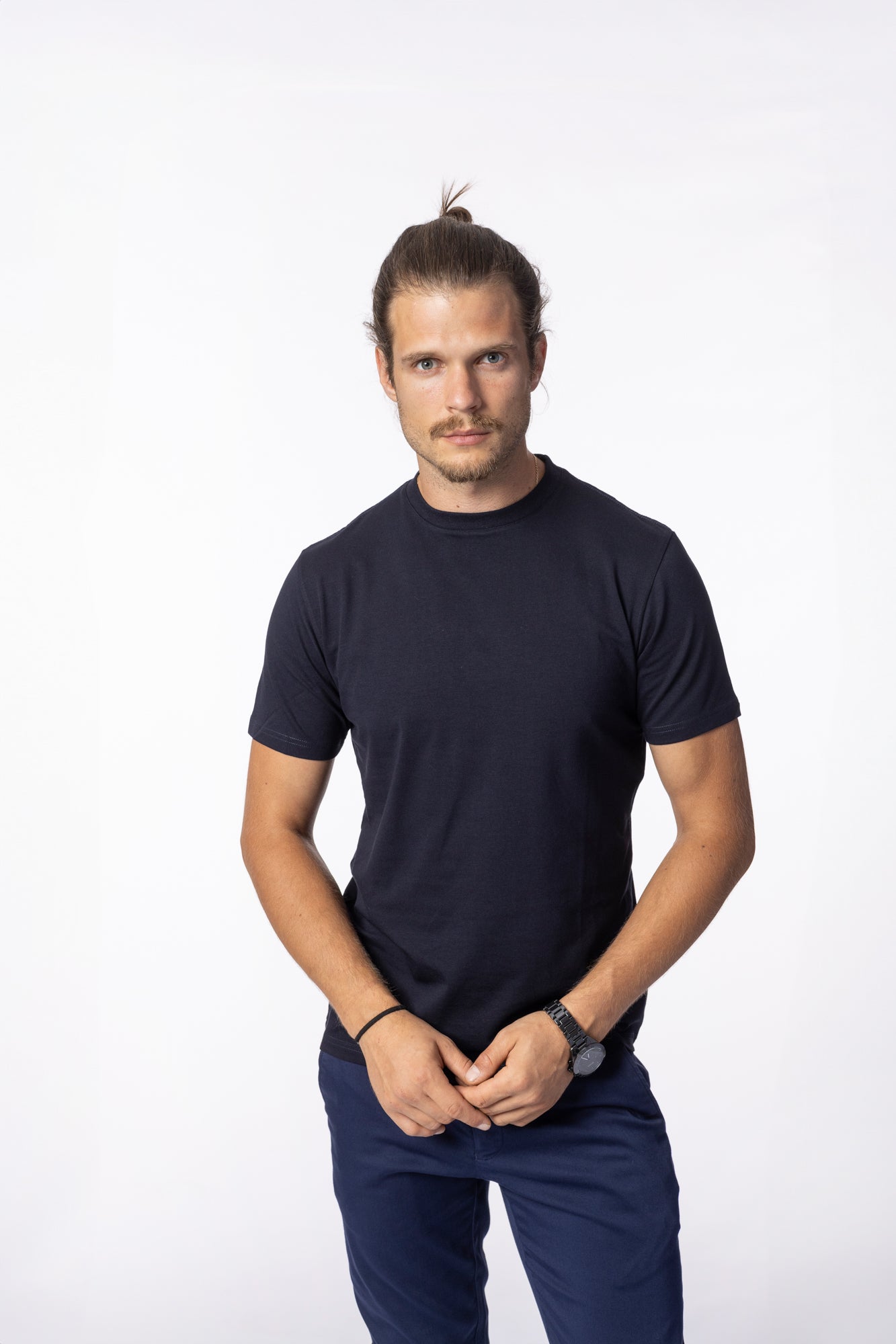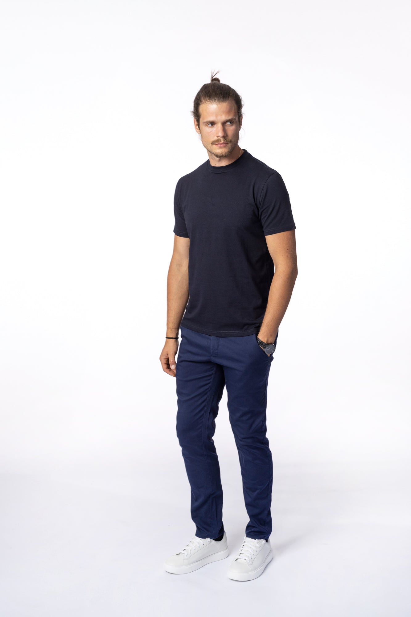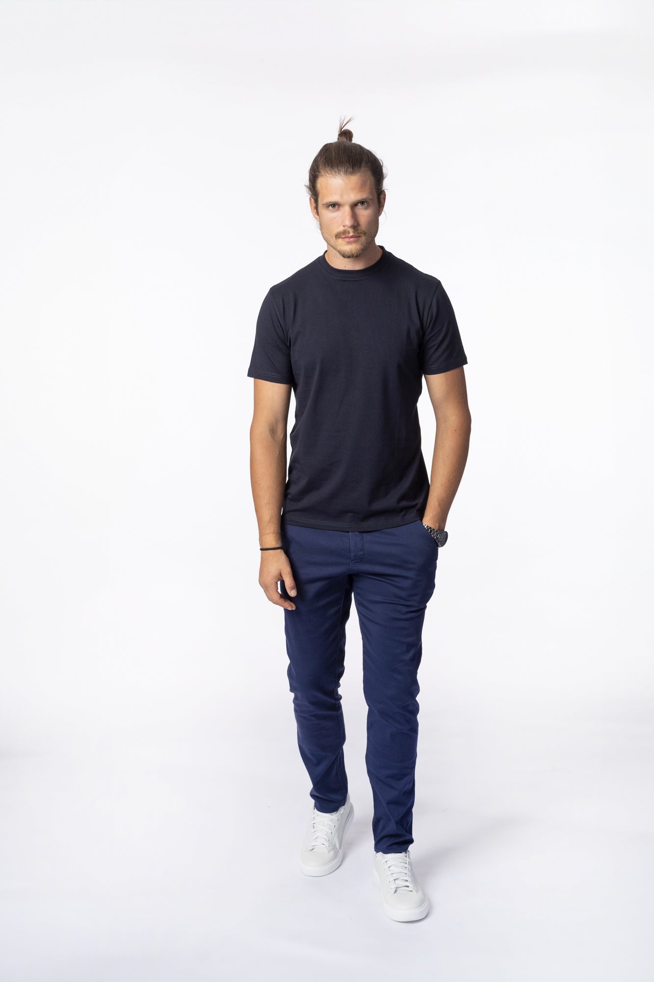 Descriere: Acest tricou navy din 94% bumbac 6% elastan oferă confort și versatilitate într-un design minimalist. Perfect pentru ținutele casual, tricoul poate fi integrat ușor în garderoba ta pentru un look modern și relaxat.