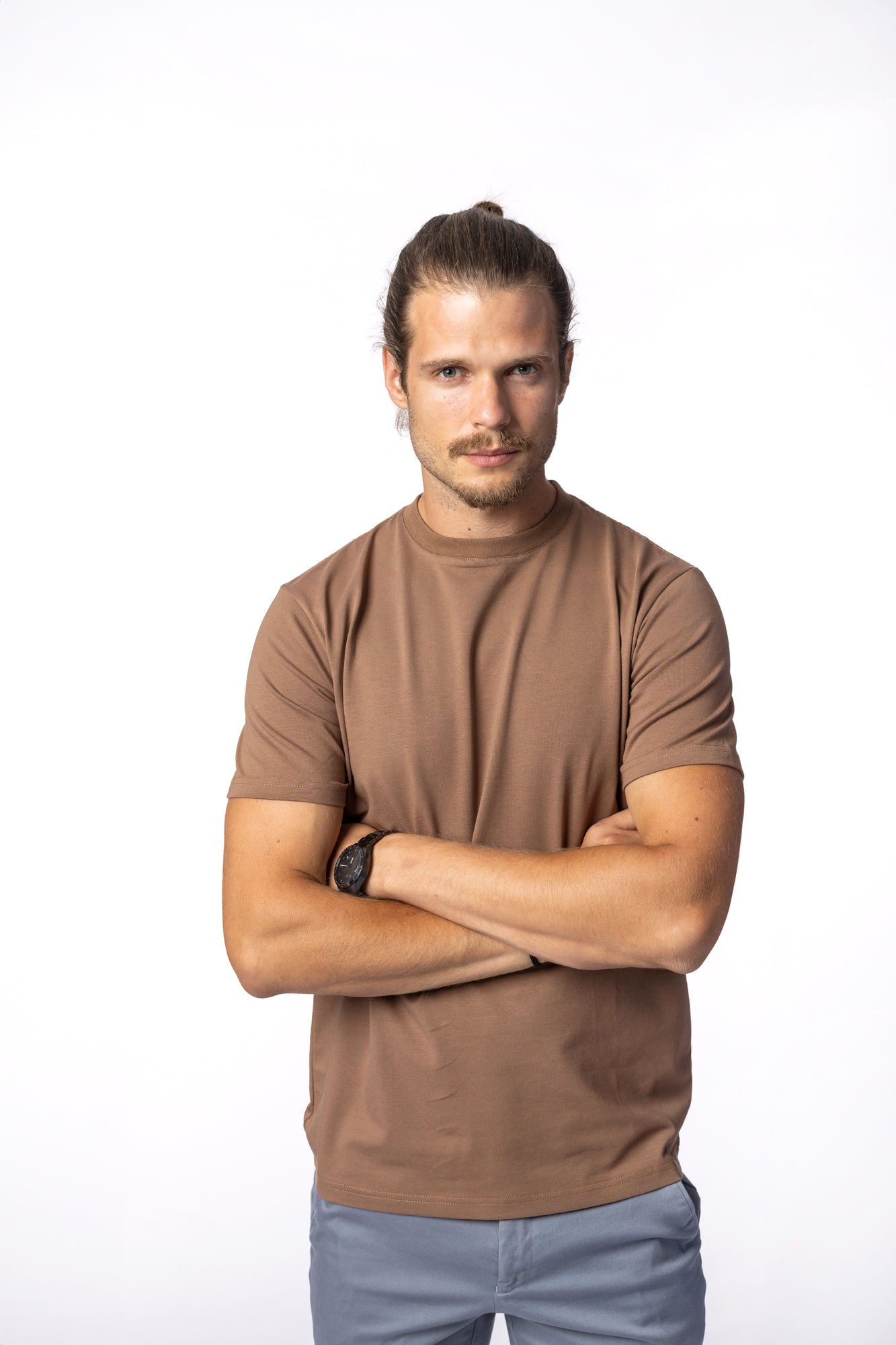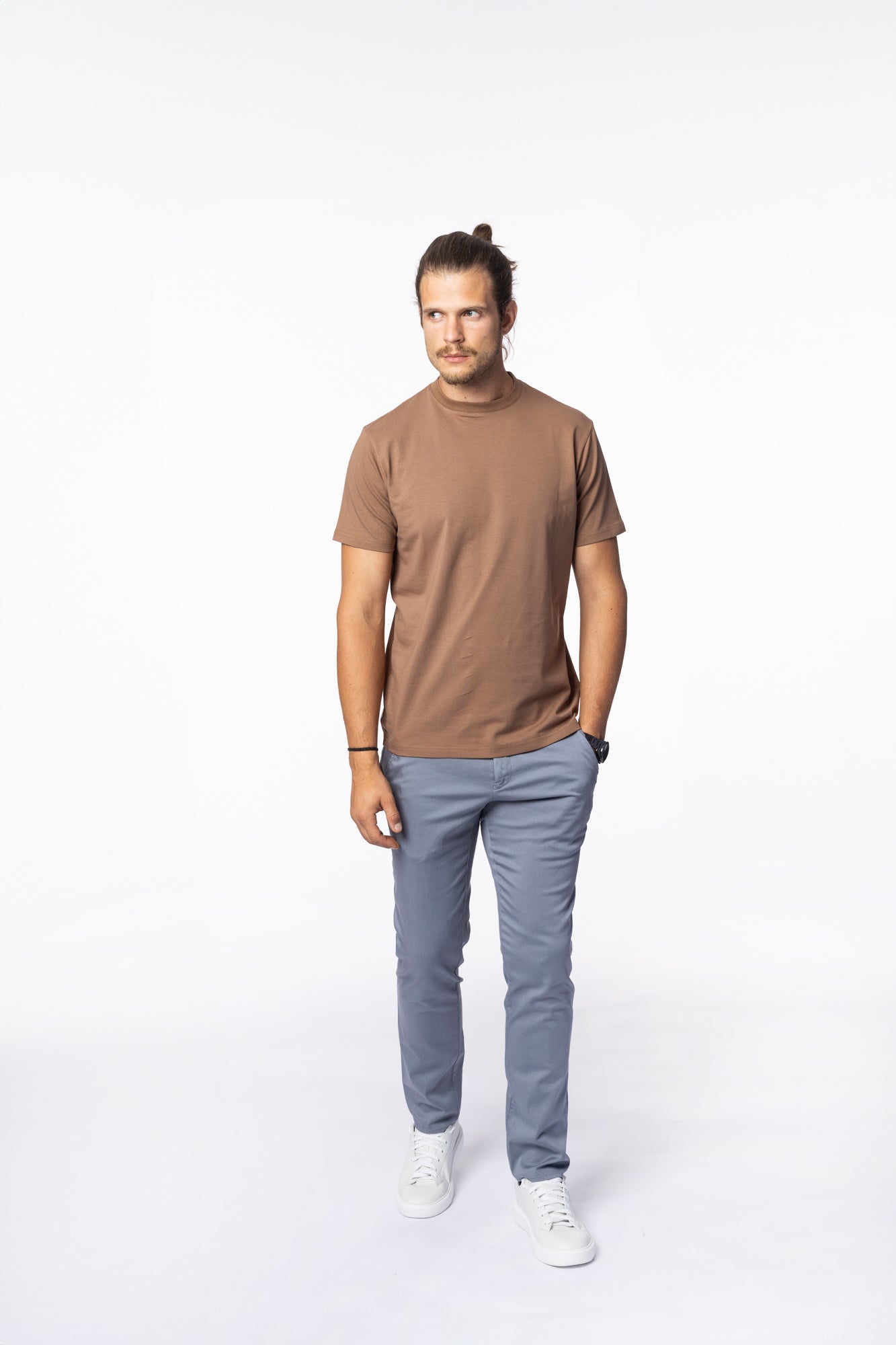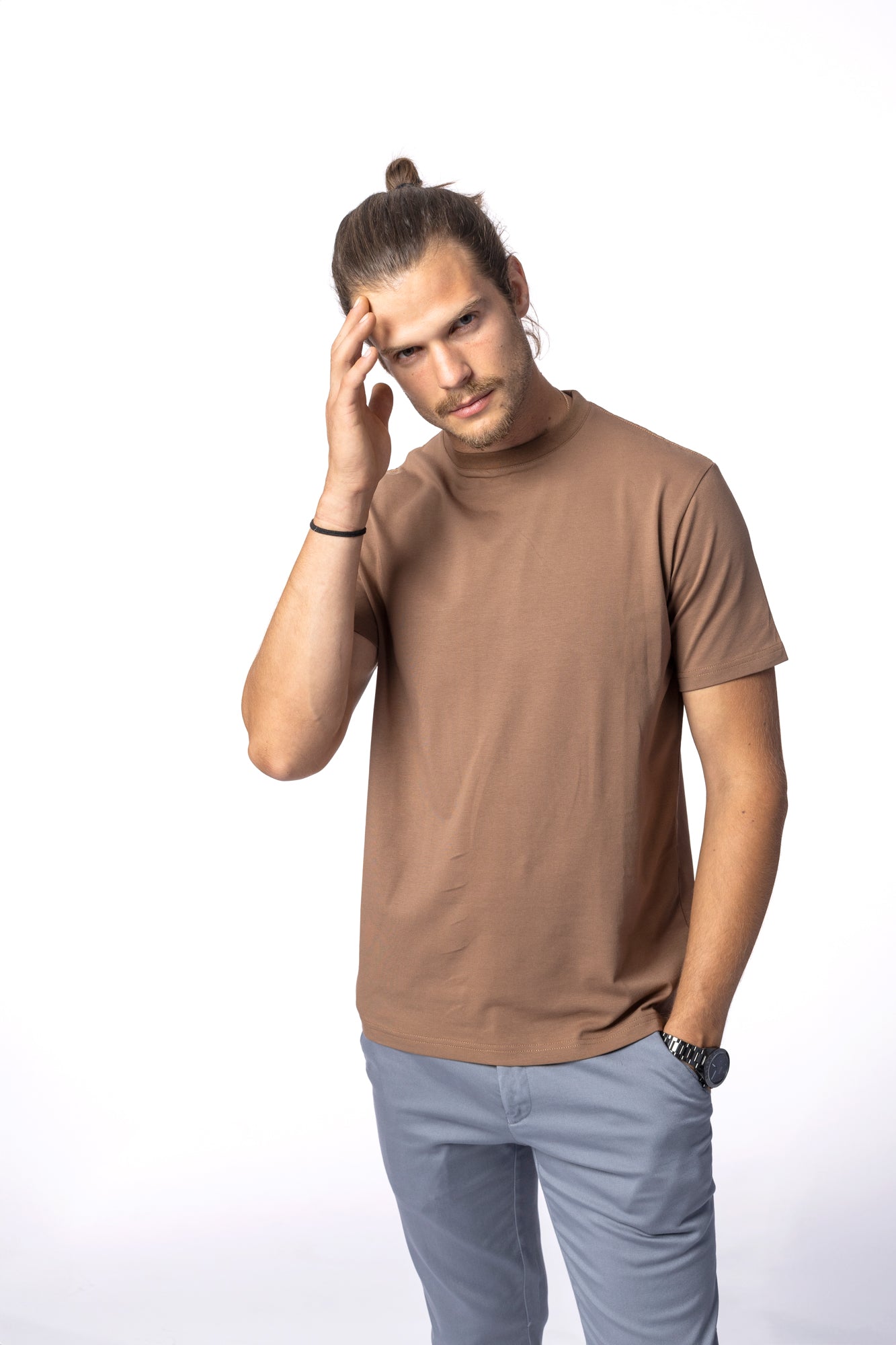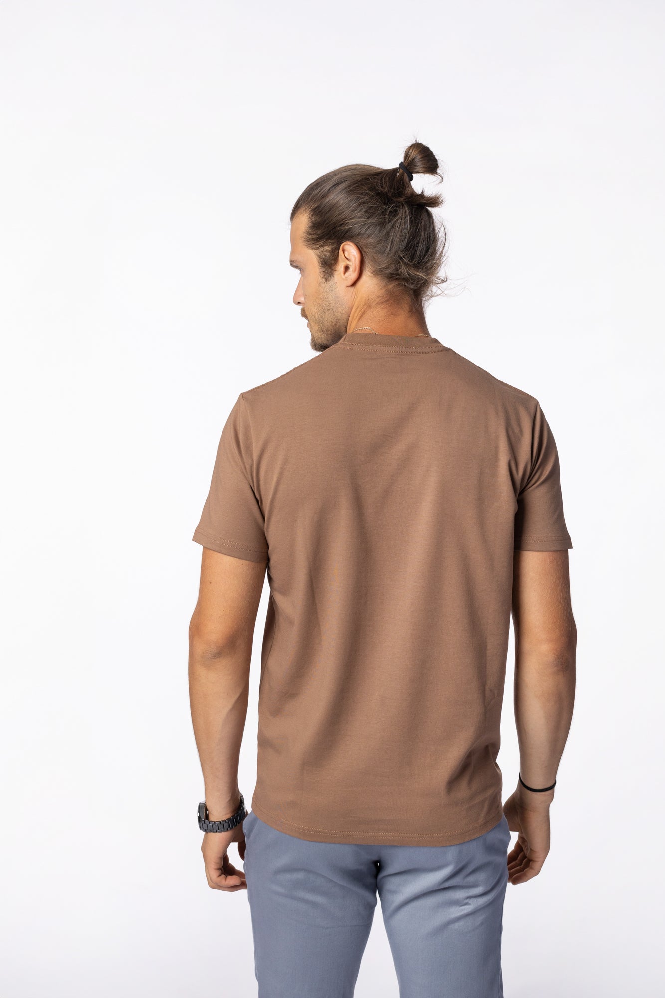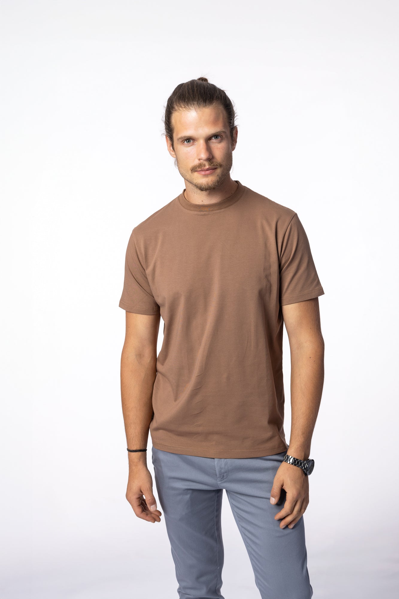 Descriere: Tricoul maro dintr-un melanj din bumbac 94% si 6% elastansi este o alegere ideală pentru confortul de zi cu zi. Designul minimalist și versatil îl face perfect pentru orice ocazie, oferindu-ți un look relaxat și modern.