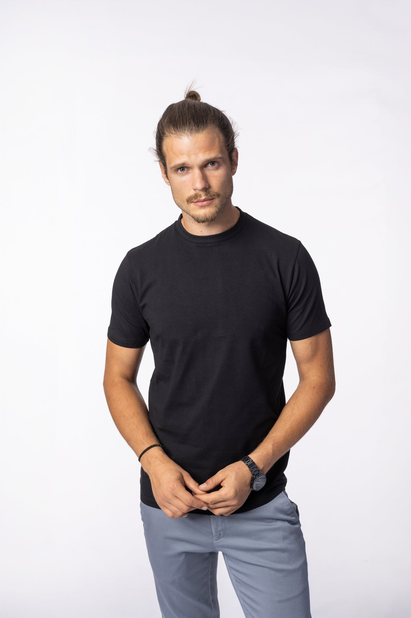 Descriere: Acest tricou negru din 94% bumbac 6% elastan oferă confort și versatilitate într-un design minimalist. Perfect pentru ținutele casual, tricoul poate fi integrat ușor în garderoba ta pentru un look modern și relaxat.