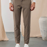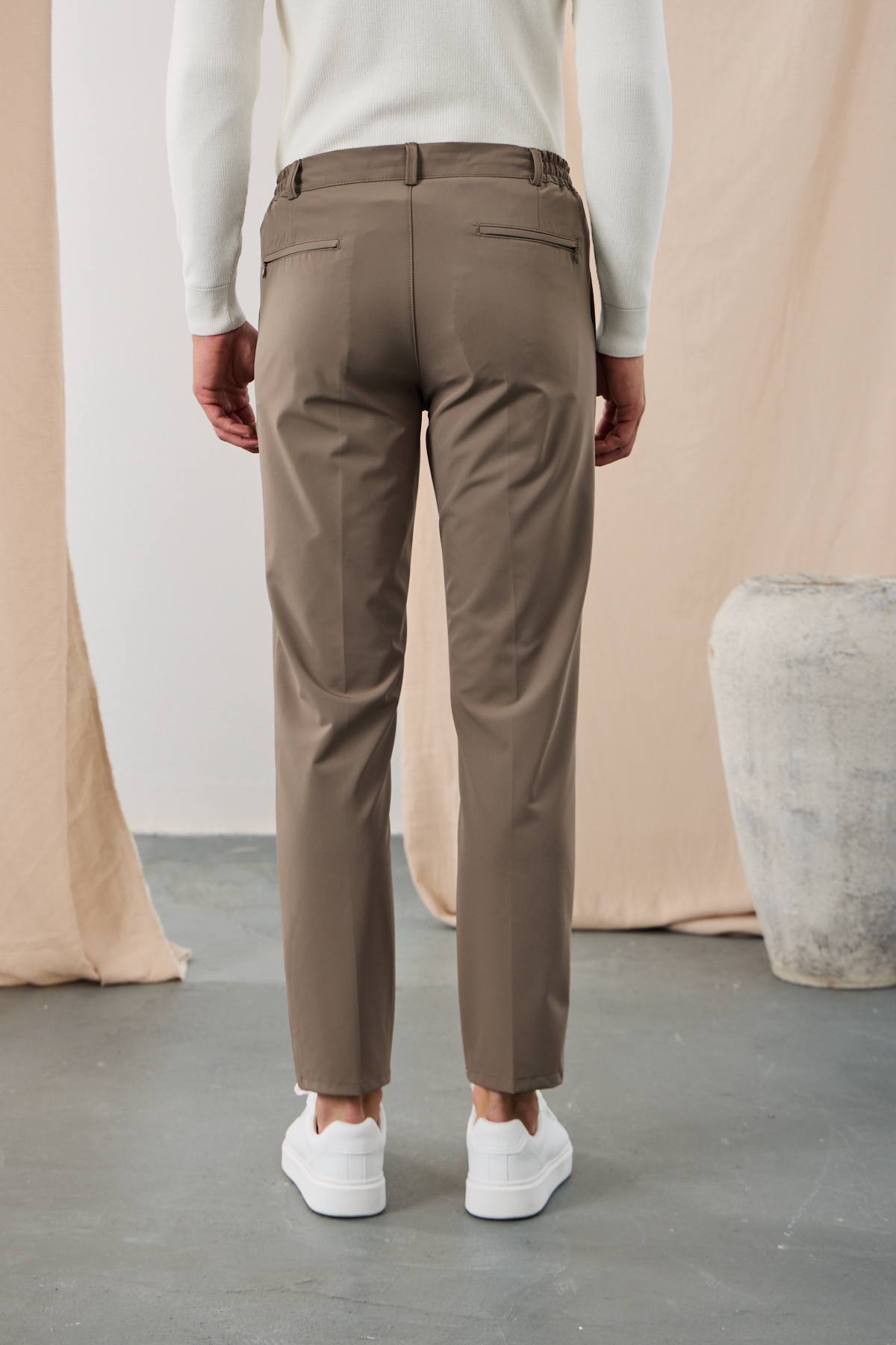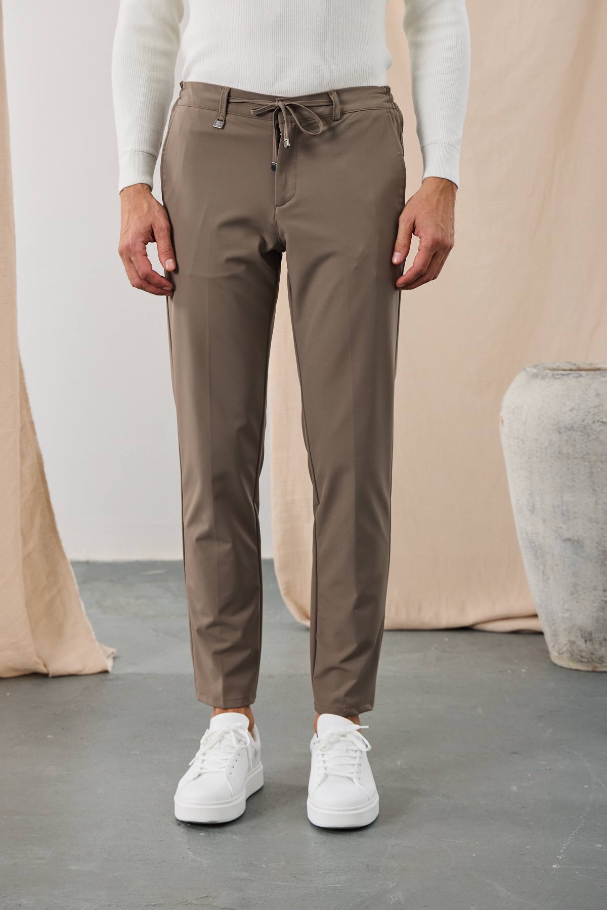 Lejeri și moderni, acești pantaloni din material tehnic cu stretch oferă libertate de mișcare și un look îngrijit toată ziua. Talie hibridă cu șnur și elastic lateral – confort de jogger, aspect de chino.
