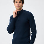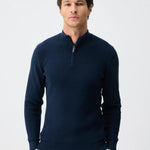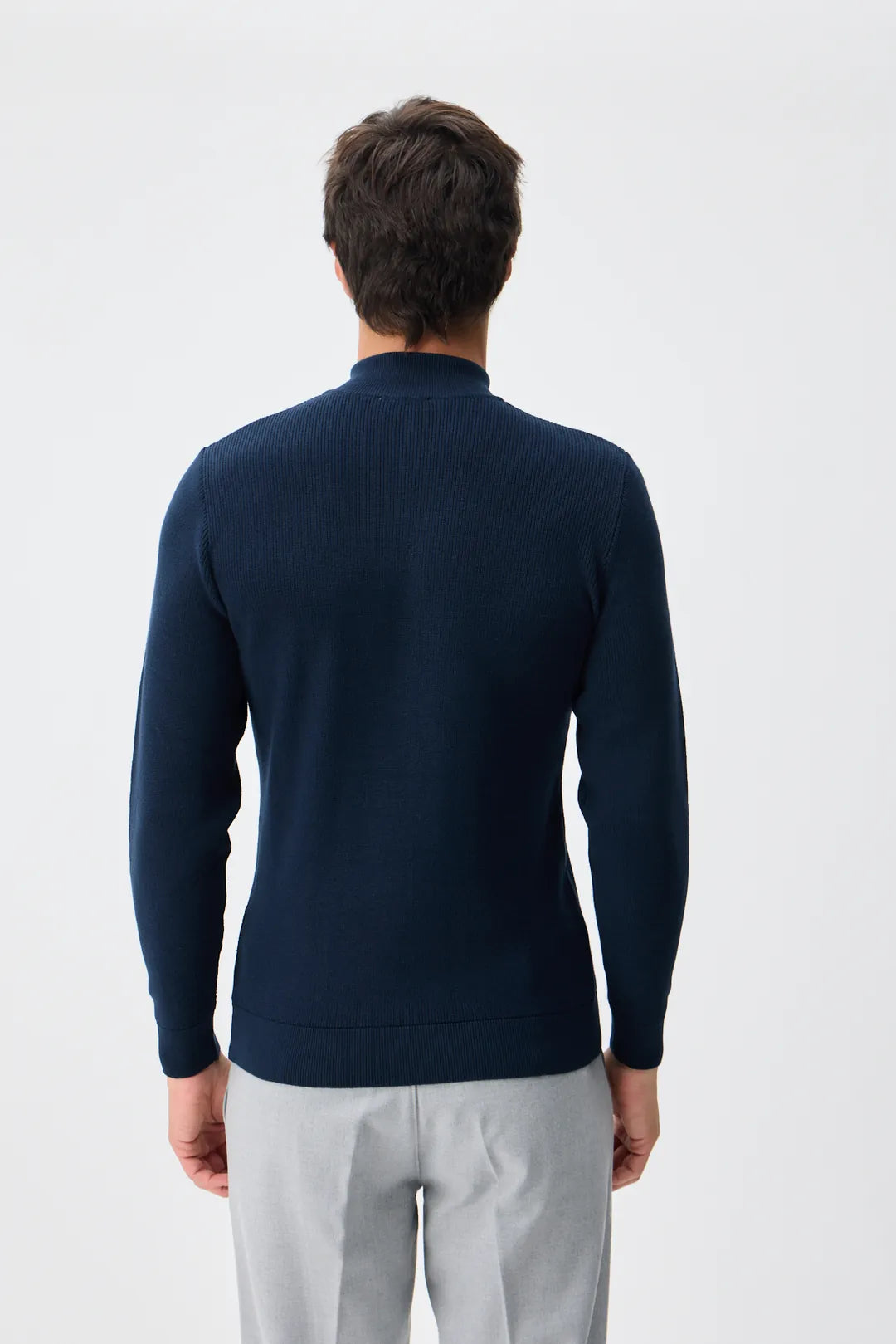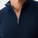 Pulover din bumbac cu fermoar la jumătate - bleumarin