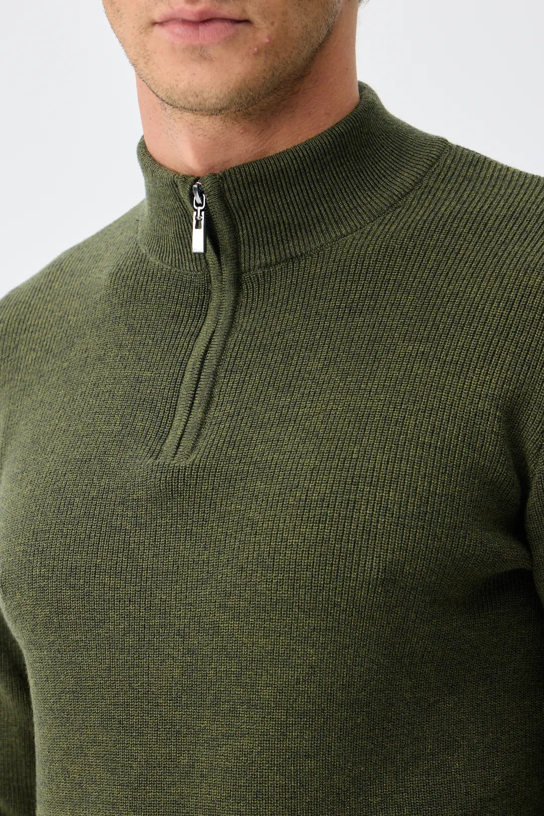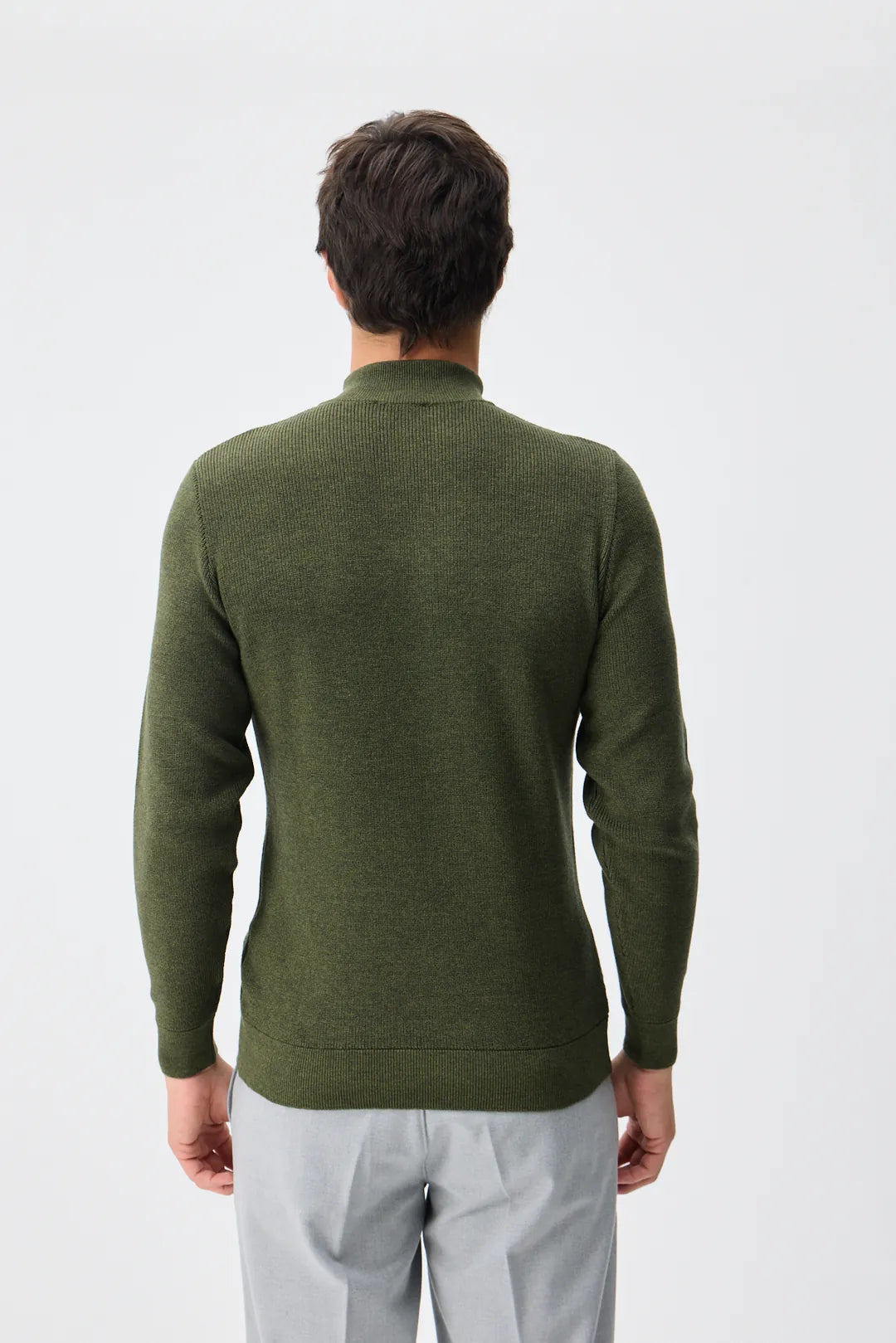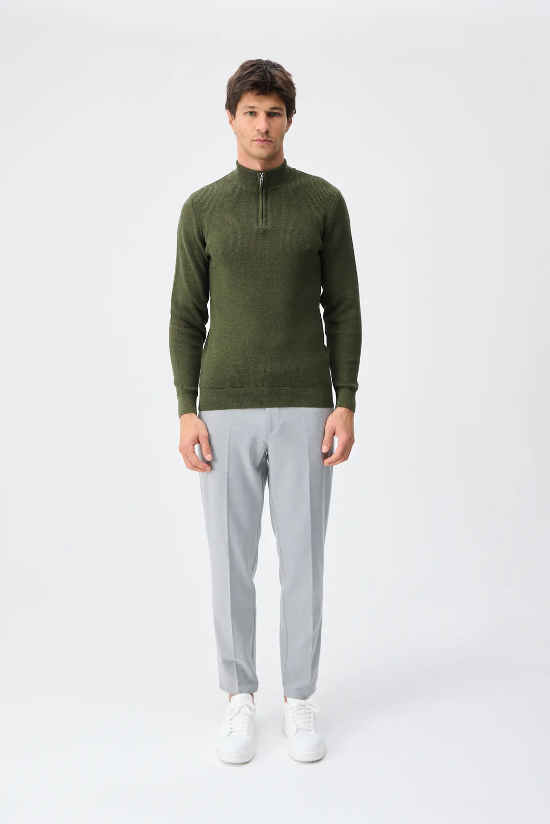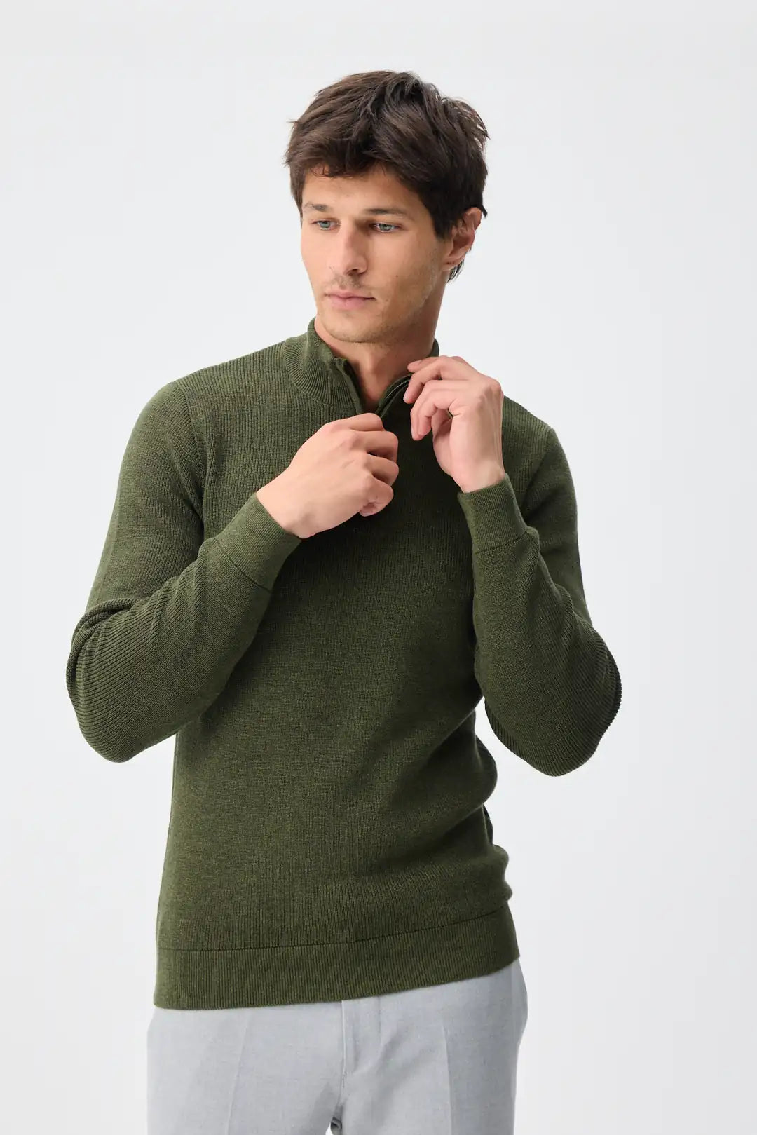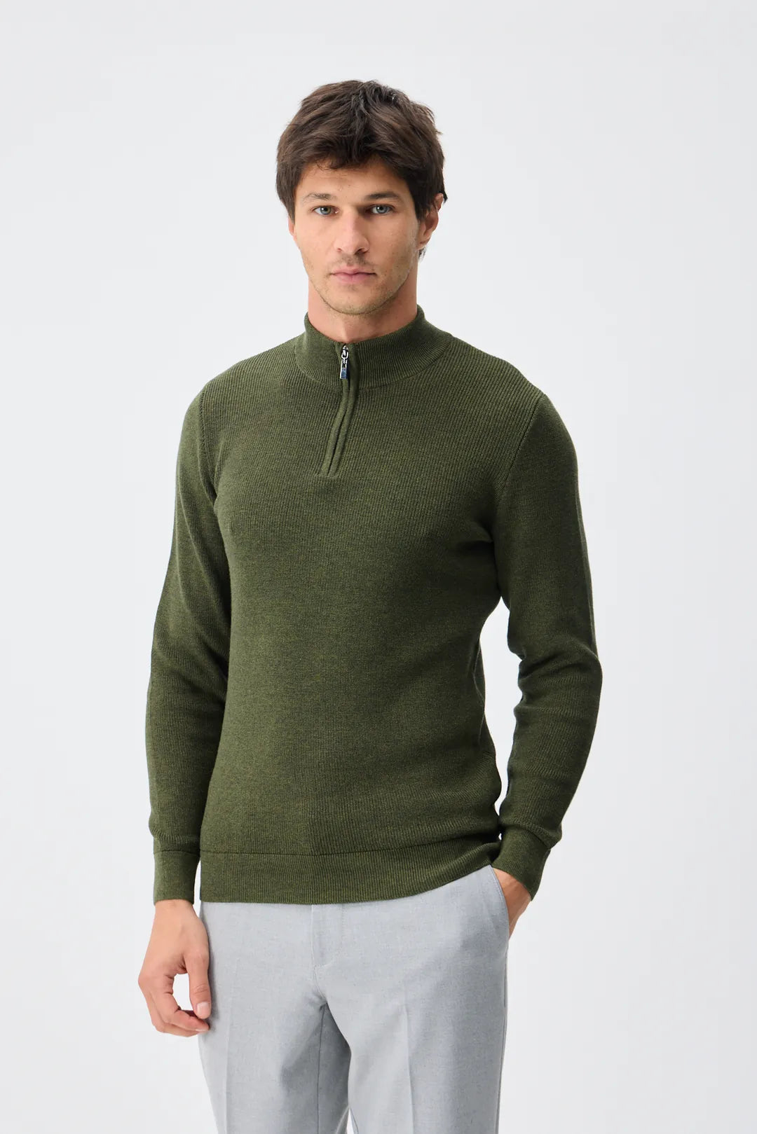 Pulover tricotat fin, cu guler înalt și fermoar la jumătate, gândit pentru eleganță de zi cu zi. Croiala lejeră și textura naturală oferă respirabilitate și confort pe tot parcursul zilei. Se poartă la fel de bine peste o cămașă sau direct pe piele și este alegerea ideală pentru sezoanele de tranziție.