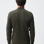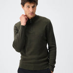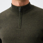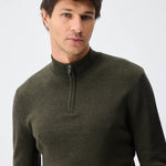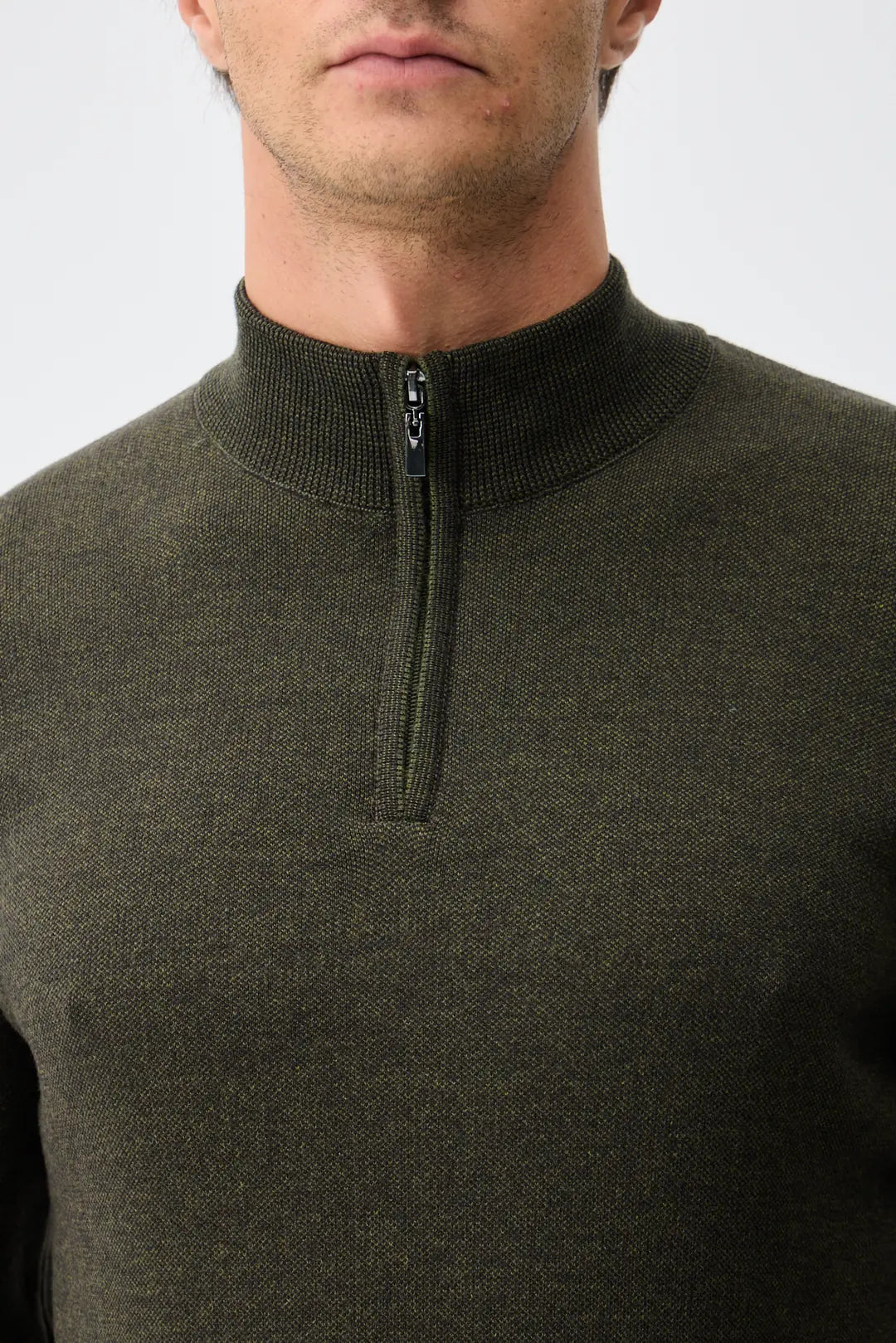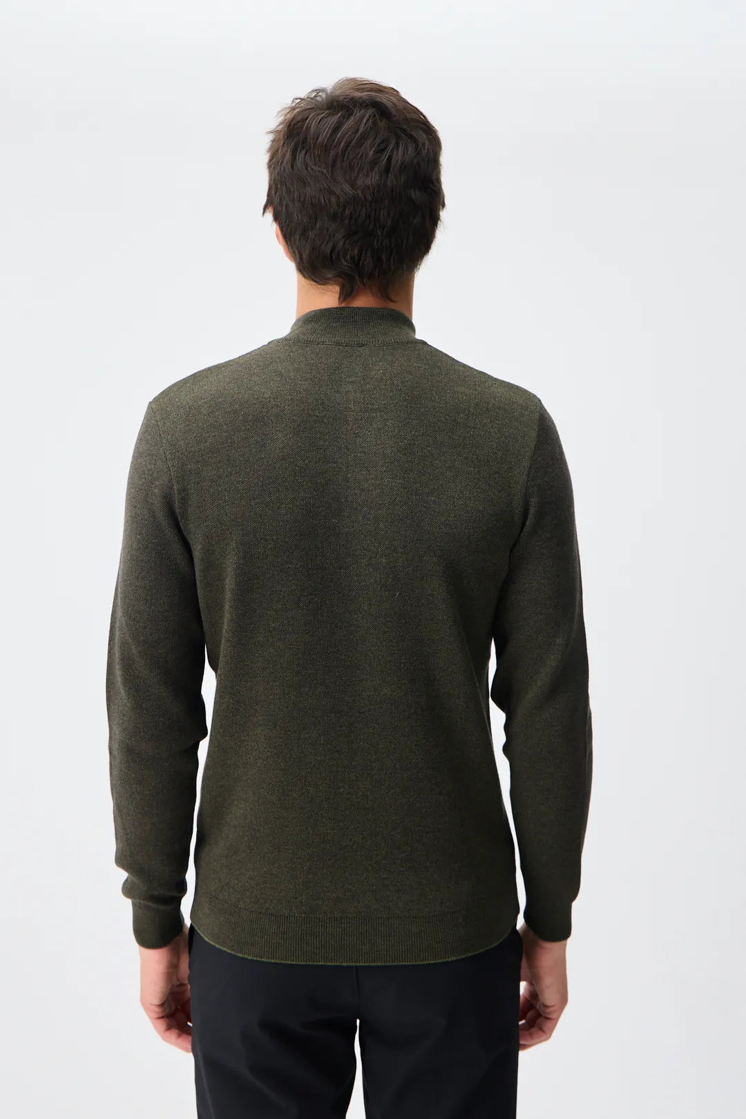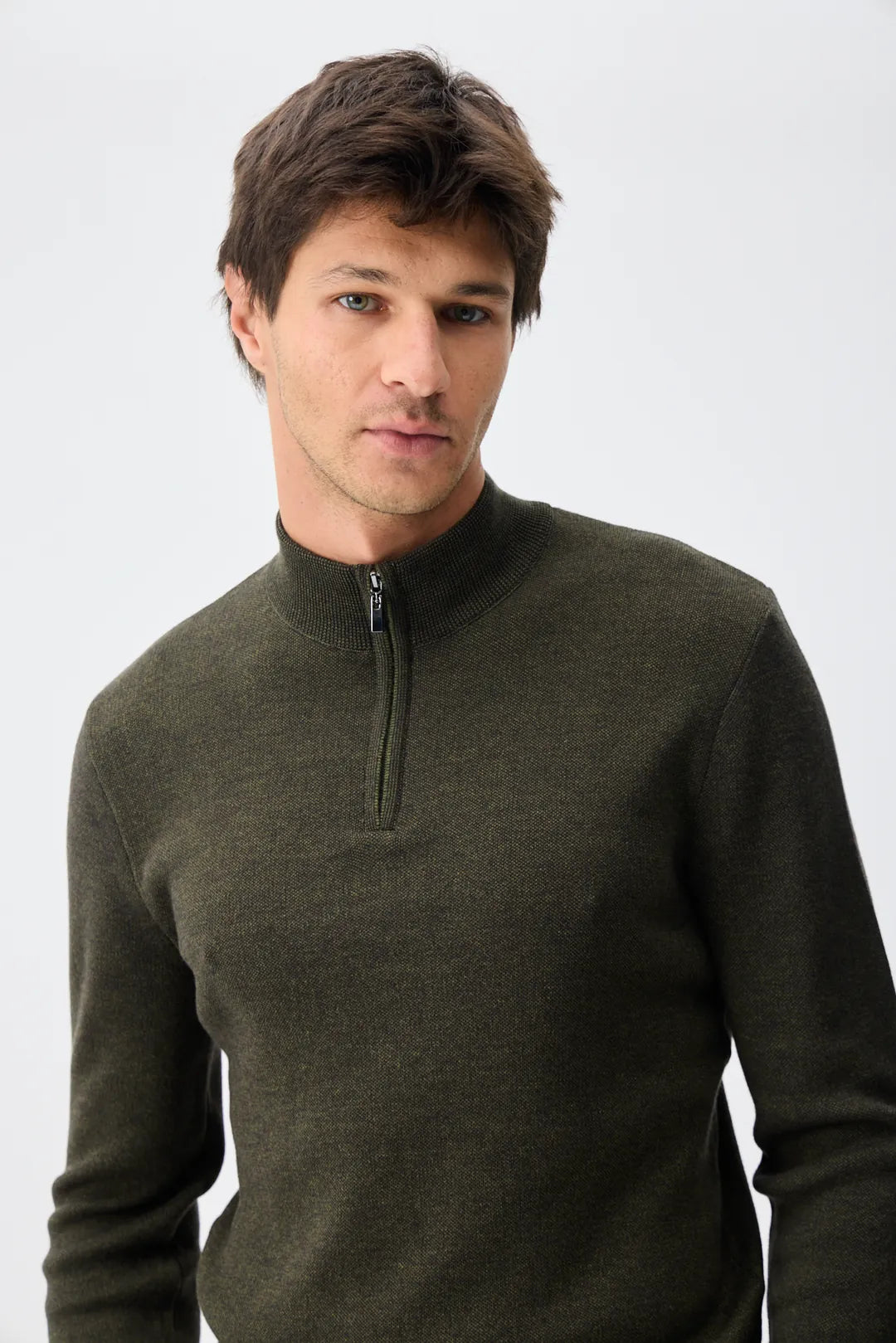 Pulover din bumbac cu fermoar la jumătate - verde inchis