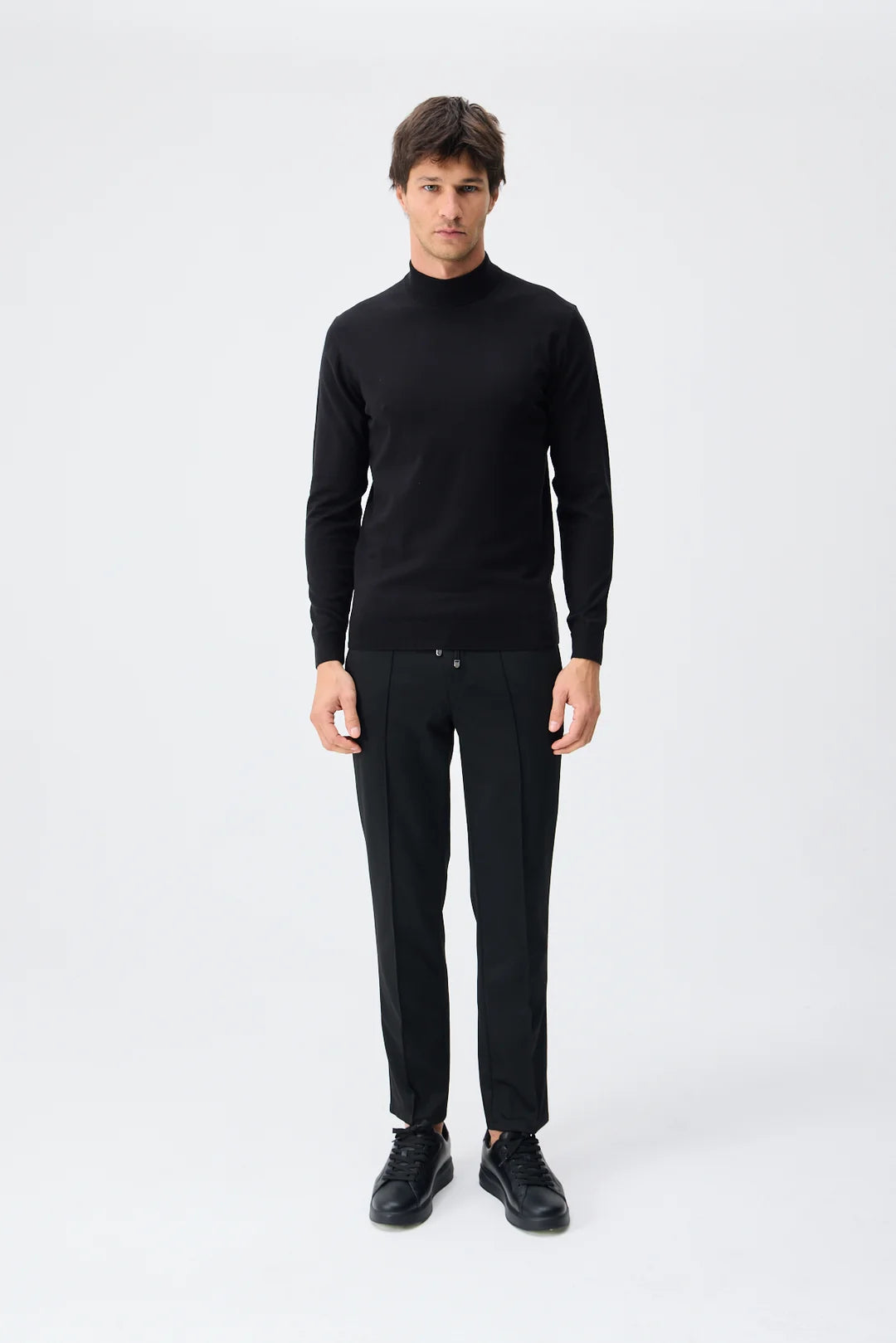 Un pulover „half turtleneck” cu atingere de cașmir, tricot fin și respirabil. Croiala lejeră și gulerul înalt scurt îl fac ușor de purtat atât singur, cât și sub sacouri sau jachete. Perfect pentru primăvară, toamnă și serile mai răcoroase de vară – un mix reușit între confort natural și eleganță urbană.