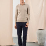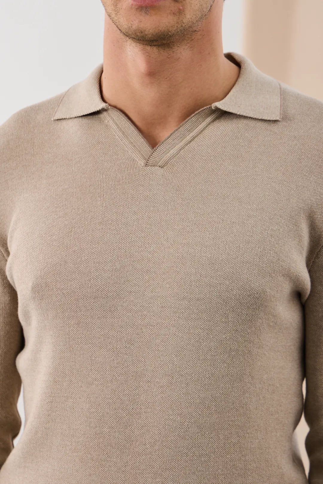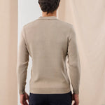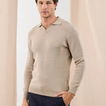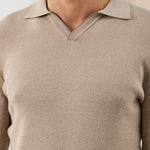Pulover polo tricotat cu guler în V - bej