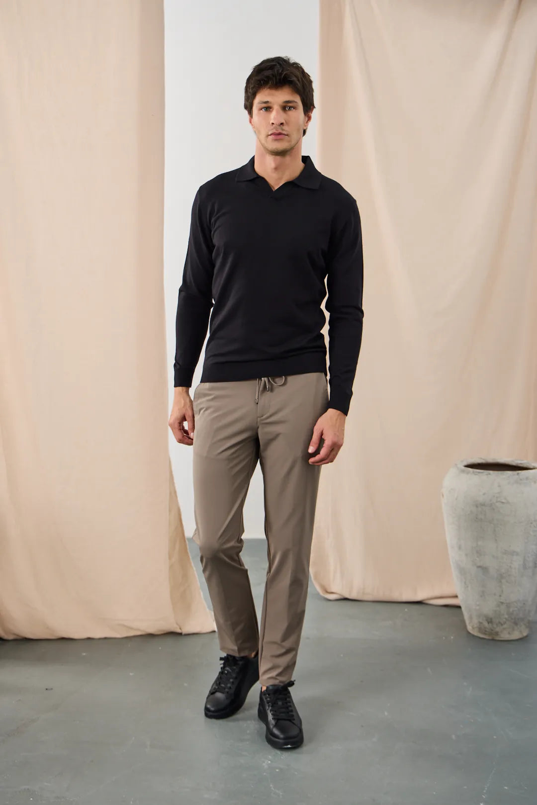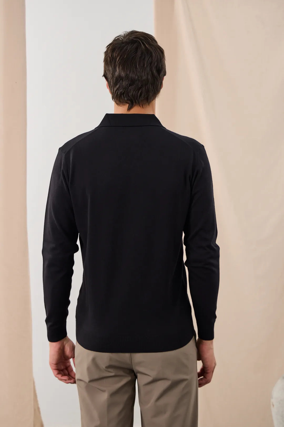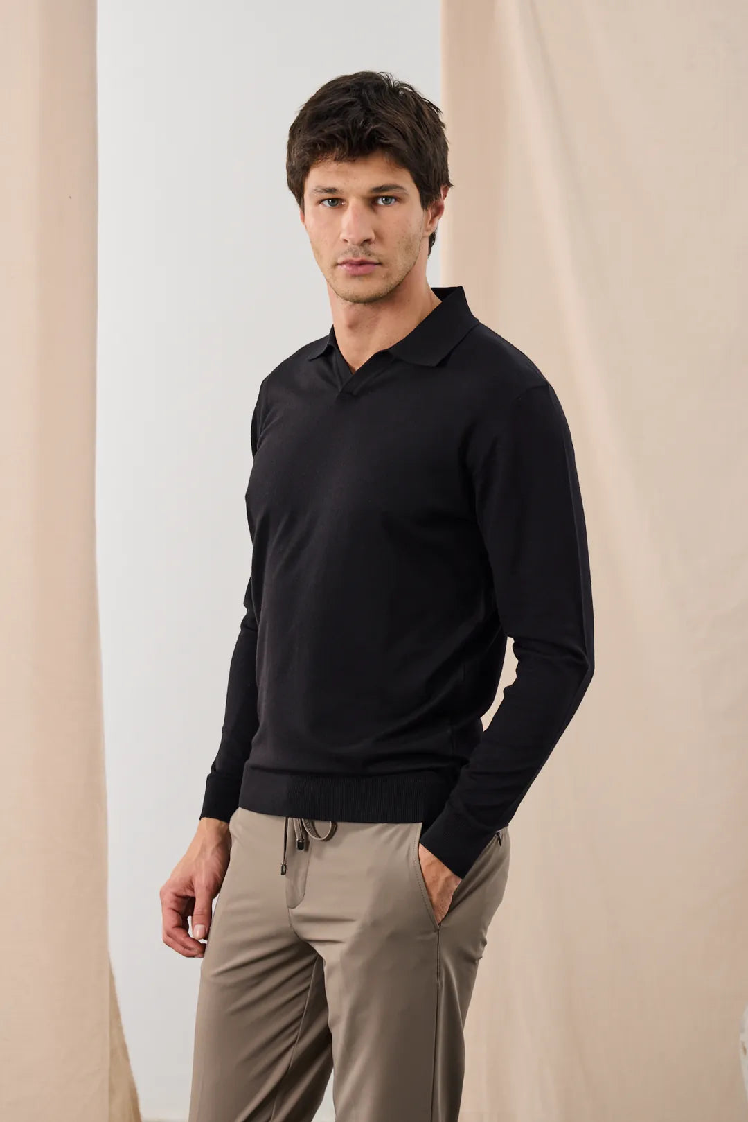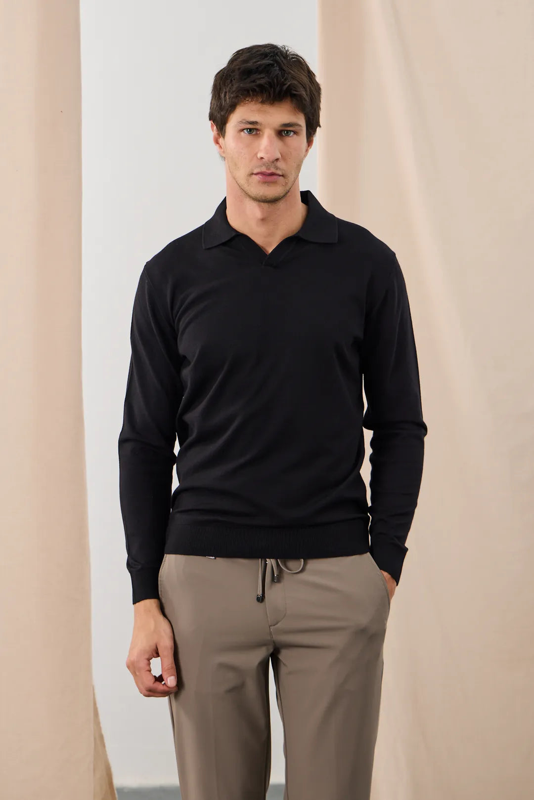 Pulover din tricot fin, cu guler deschis în V în stil polo – simplu, modern și ușor de integrat în ținute smart-casual. Textura naturală și croiul lejer îl fac confortabil pe tot parcursul zilei. Se poartă singur când e mai răcoare sau ca strat intermediar sub sacou/geacă. Manșetele și tivul tricotate păstrează forma în timp.